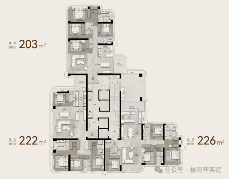 对比:保利面粉厂大部分户型南北通透,仅有3栋203㎡、222㎡和9栋436㎡为了景观牺牲了通风。