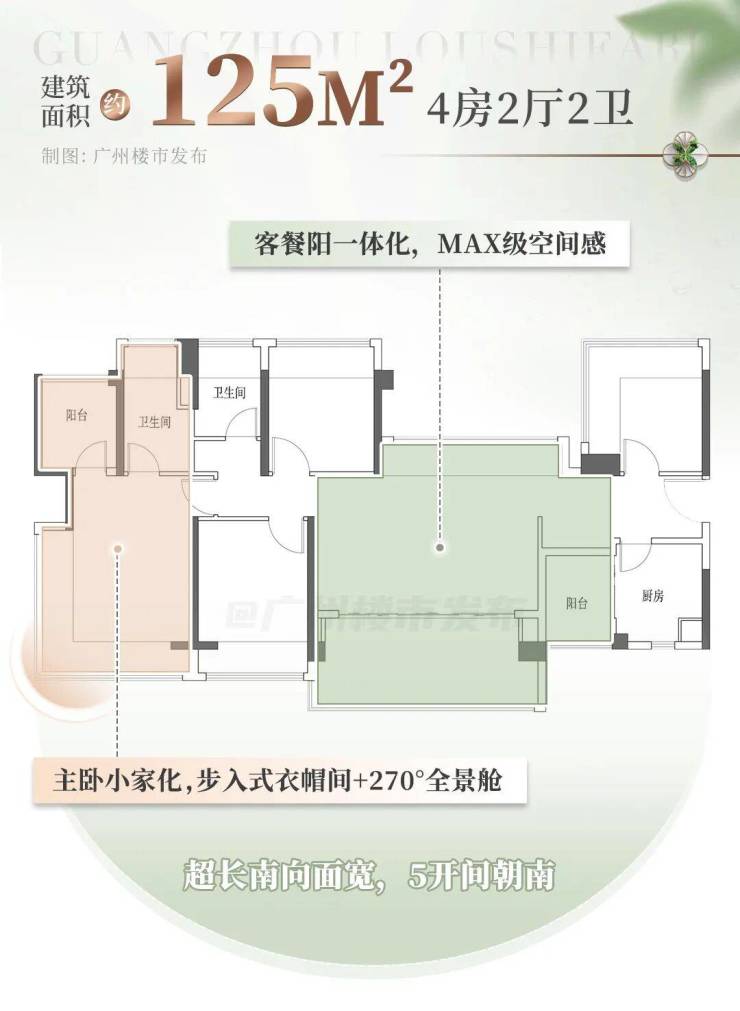 建面约125平的户型,还升级了独立的主卧步入式衣帽间。