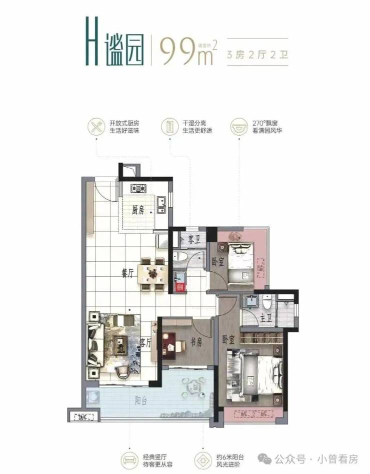 大多户型应用了竖厅设计,使得活动区跟休息区互不干扰,实现动静分离。年轻人在客厅开party,也不影响父母在卧室睡觉,这点好不好,谁住谁知道。