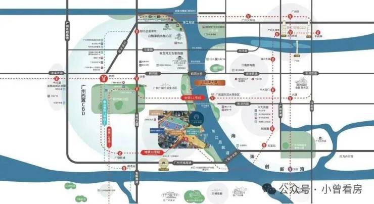 广州幸福湾,拥有2.4km的超长江岸线,稀缺性可见一斑。