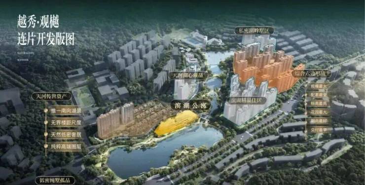 越秀观樾坐拥太阳湖和月亮湖双湖滨水生态湖景,将打造成天河低密度的山水湖景豪宅社区。