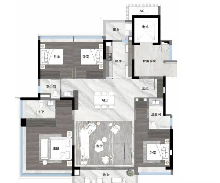 ——板式专梯入户·双主套双阳台配置·44㎡社交大方厅