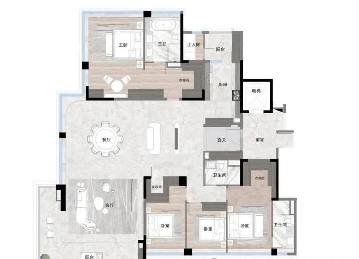 ——全套房设计·122㎡定制化社交巨厅·双归家动线·15米270°转角阳台