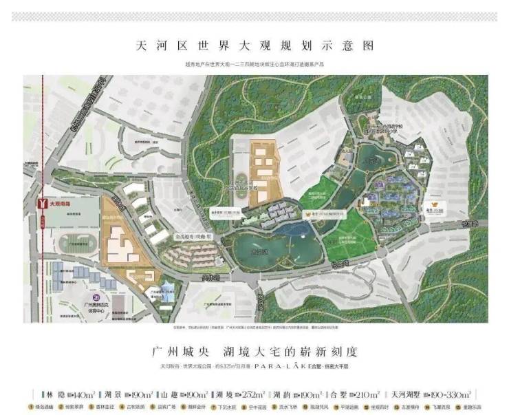 越秀观樾项目择址广州市天河区的世界大观板块,整个观樾项目将由越秀集团分为四期连片开发