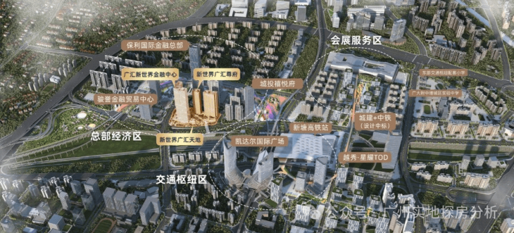 楼下即享新世界广汇天地,临近增城万达广场、永旺梦乐城等大型商超,可通过项目二楼平台的天桥到达凯达尔综合体。