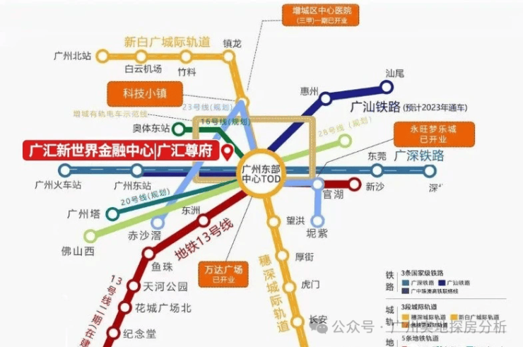 项目靠近广州东部首个TOD大型综合体,坐拥4条地铁+3条国家铁路+2条轻轨,汇集广州地铁13、28、20、16和28号支线,广深、广汕、京九三条高铁以及穗深、新白广城际两条城轨等。广园快速路、沈海高速、广深大道等交通要道。