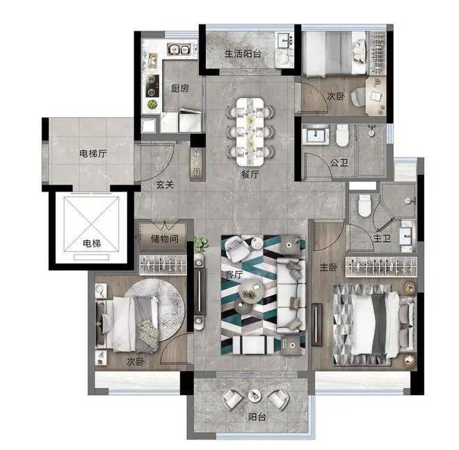 项目在户型设计上遵循“以人为本”的原则,注重空间实用性与功能性结合。每一套户型都在充分考量家庭成员日常起居习惯的基础上,进行合理分区,动静分离、干湿分区,确保每一位家庭成员都能拥有自己的独立空间,同时又能在公共空间中享受天伦之乐。