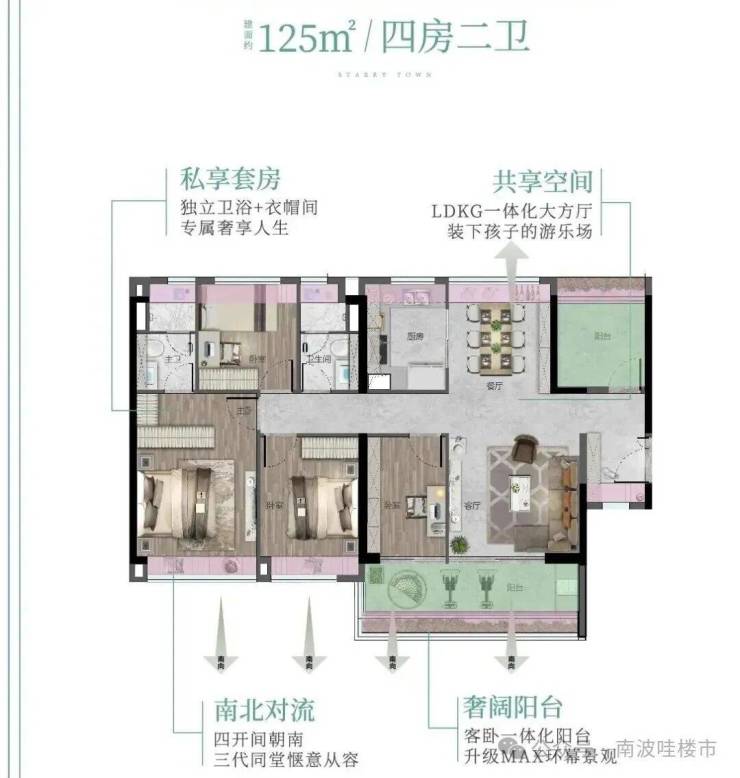 125方4+1房2卫,五开间朝南,客餐厅主卧南北对流,超实用LDKG大方厅,满足生活多样使用