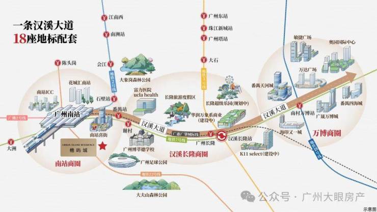 (汉溪大道约8公里/15min到万博、兴业大道-新光快速约20公里/29min到珠江新城)