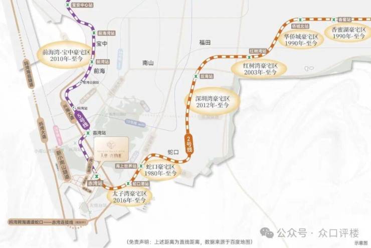 项目距2号线(豪宅线)与5号线(发展线)首发赤湾站约300m(直线距离),从此,坐地铁而不是站地铁,未来新小南山隧道(预计2027年竣工)、望海路升级等重大交通配套持续落地,咫尺间连通蛇口、前海。