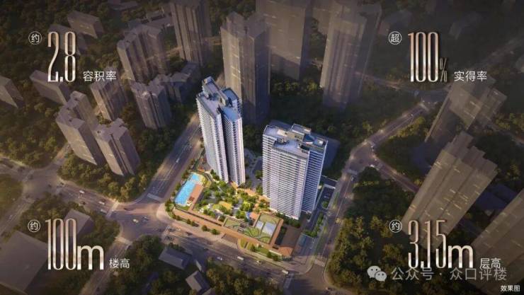项目用地面积13657.28㎡,容积率仅2.8,建筑面积38155㎡,含住宅34555㎡,其他面积用于物业用房、托育机构和公交站,车位380个。