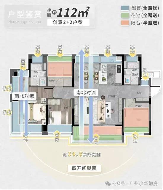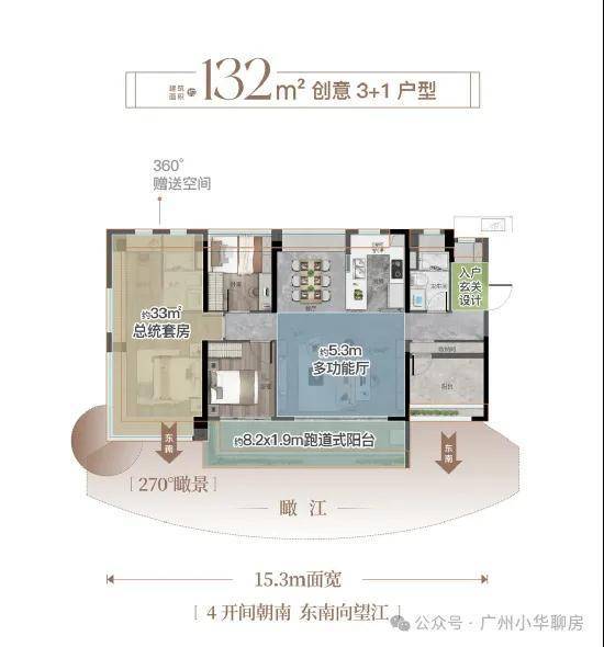 【产品亮点】全南向设计、北望番禺广场南向望江、使用率超 100%。