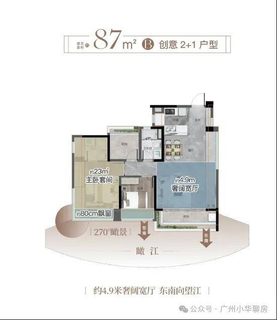 户型都是广州新规之下,路劲美的隽樾府抢占窗口期产品设计,打造全番禺绝版户型,近110%使用空间,全南向空间布局,宽幕江景、番禺广场繁象等尽收眼底