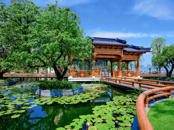 • 无边际水景:园林与江水交融,亭台廊桥点缀其间,漫步其中宛若穿越千年东方意境。