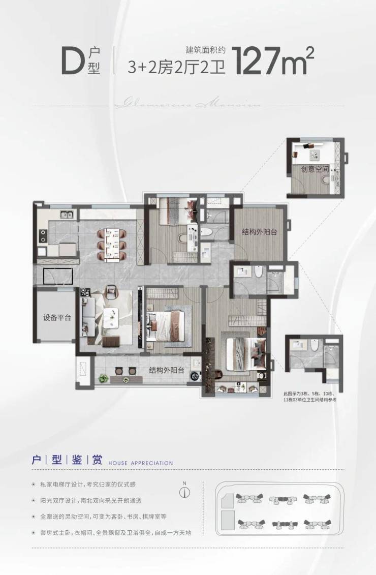 产品面积:约 89-162㎡创变三至五房