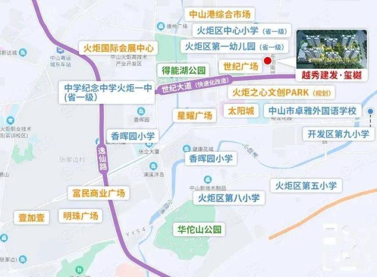 一旁的世纪大道正进行快速路改造,约3公里可直通东部外环高速,接驳深中通道。火炬区道路交通设施配套完善,出行上班交通都非常便利。