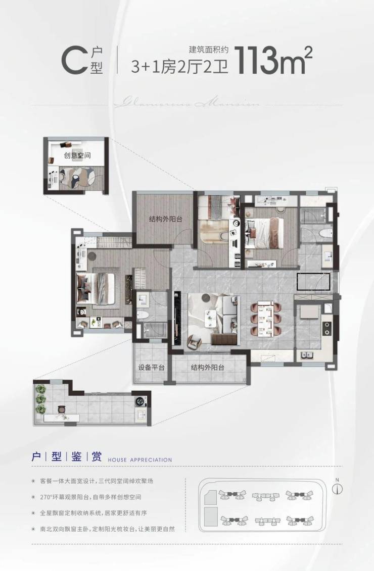 项目主要在售产品有89-113-127㎡创变三至五房,均价14000元/㎡起,精装交付。