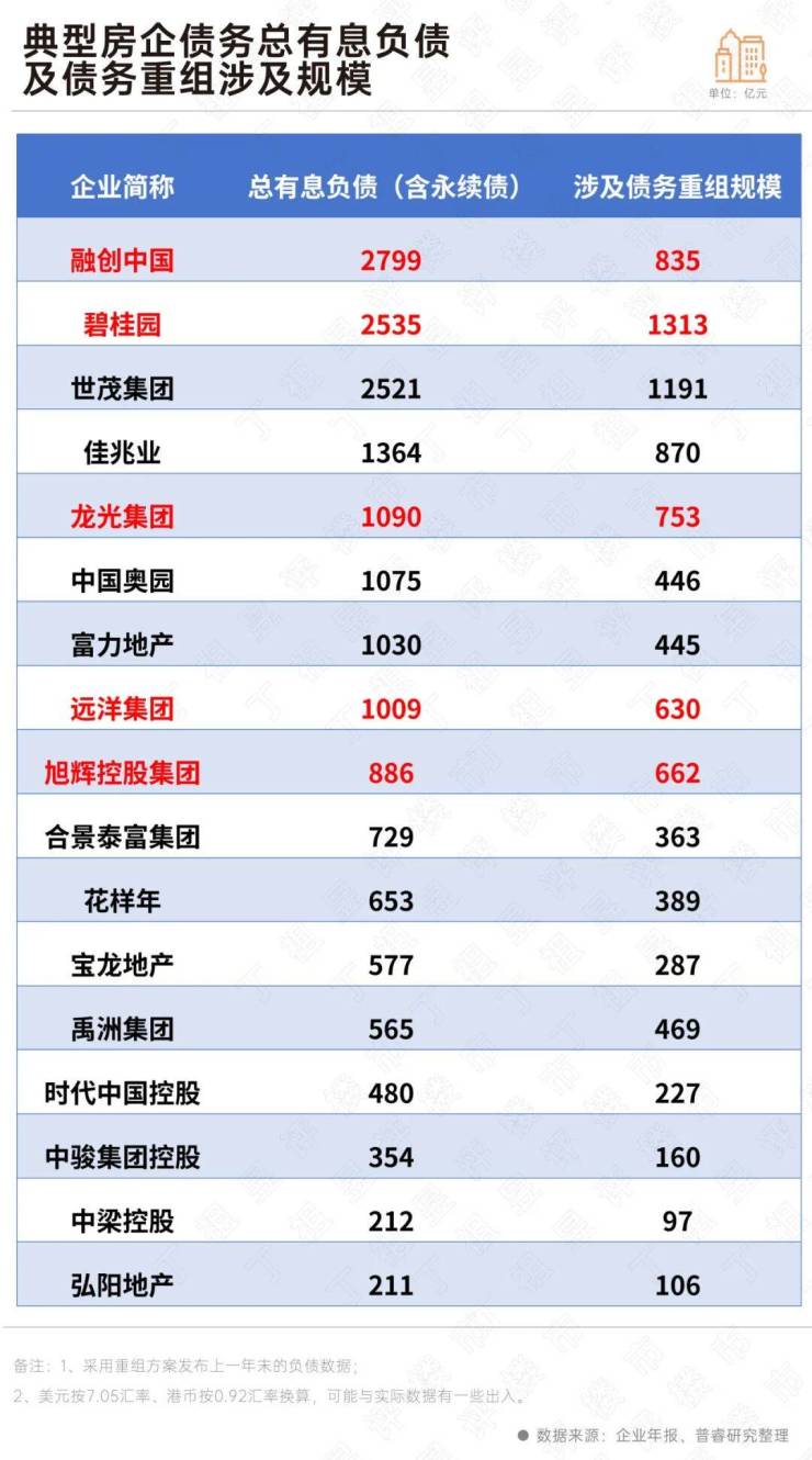 这些房企公布的债务重组方案涉及有息负债规模近1万亿元,包括融创中国、碧桂园、远洋集团、旭辉控股集团,已经基本实现境内、境外债务重组;龙光境内债务重组已经通过,境外债务重组方面,超过80%的同意债权人已加入经修订的整体协议,也接近成功。规模房企债务重组不断落地,加速行业风险出清,也为其他中小企业加速债务重组提供信心。