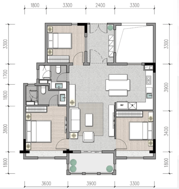 ·独立三卧:独立分布,私密性良好