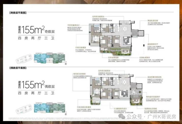 84方奇数层户型,3房2卫,竖厅格局,客厅可以和次卧打通成为一个超级大方厅。四开间朝南,南向面宽去到12.4米。空中花园面积达20㎡。
