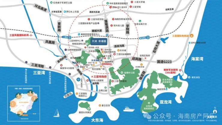 “全省规模最大的三亚市妇幼保健院”;项目周边有三亚市人民医院、农垦医院、三亚市中医院等“三甲医院”以及解放军425医院,解放军301医院;