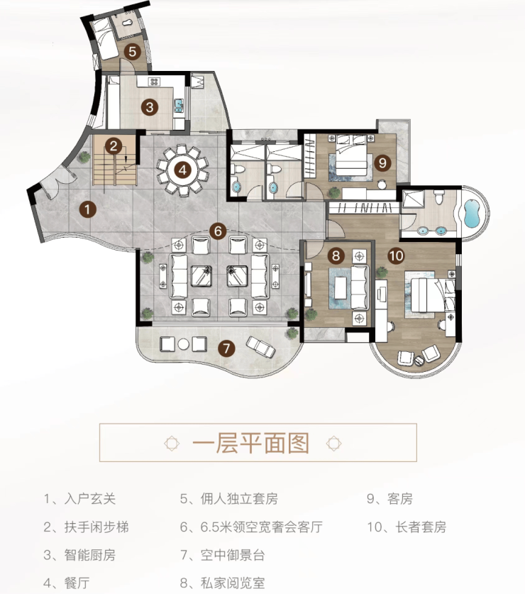 ►6.5m挑高客厅,8.15m开间阔绰会客厅,天台带私家泳池;