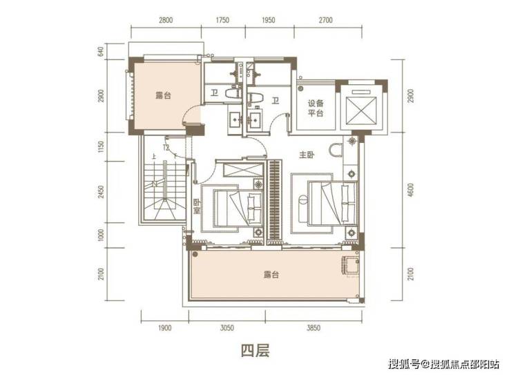 上叠面积134㎡(为3.4层)三房两厅三卫(可实现3➕1房)赠送顶楼露台