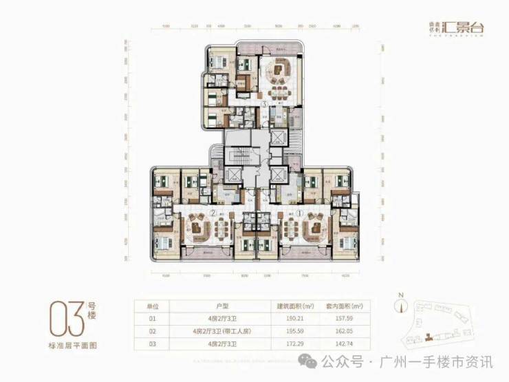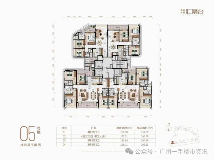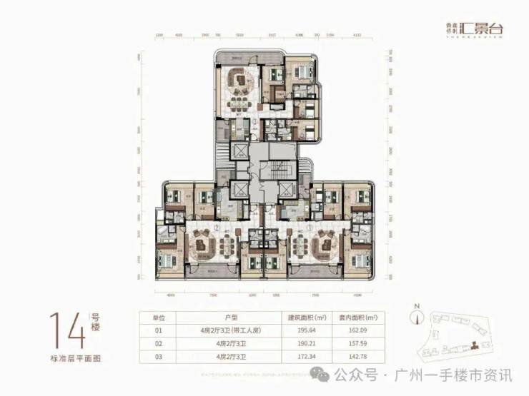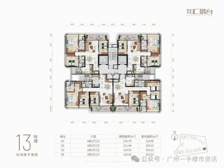 目前整个侨鑫保利汇景台住宅主要在售1-7栋和11-14栋的户型,除了12栋还未推售以外,其余8-10栋则已经基本全部售罄,现在项目主要在售户型为123-290㎡的三至五房产品,以及13栋还有少量131㎡和142㎡的稀缺南向三房户型。