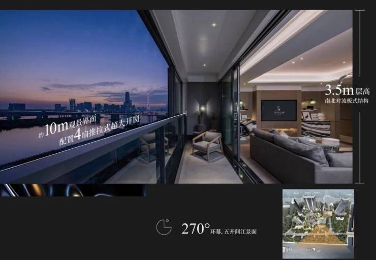 ✨3.5米层高,约9-10米观景界面全推开式幕墙;