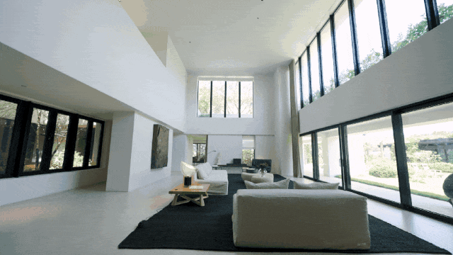室内打造也很豪横,像超高挑空会客厅、酒窖、专业厨房、独立SPA桑拿空间、健身区等应有尽有,抬头见山,低头见湖,相当震撼。