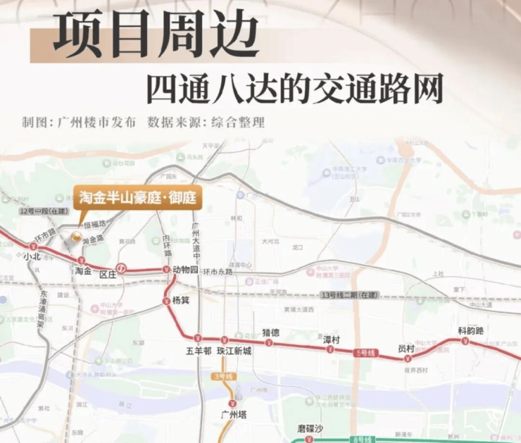 地铁近:距5号线淘金站约600米,5站到珠江新城(24分钟);在建12号线、13号线二期未来更便捷。