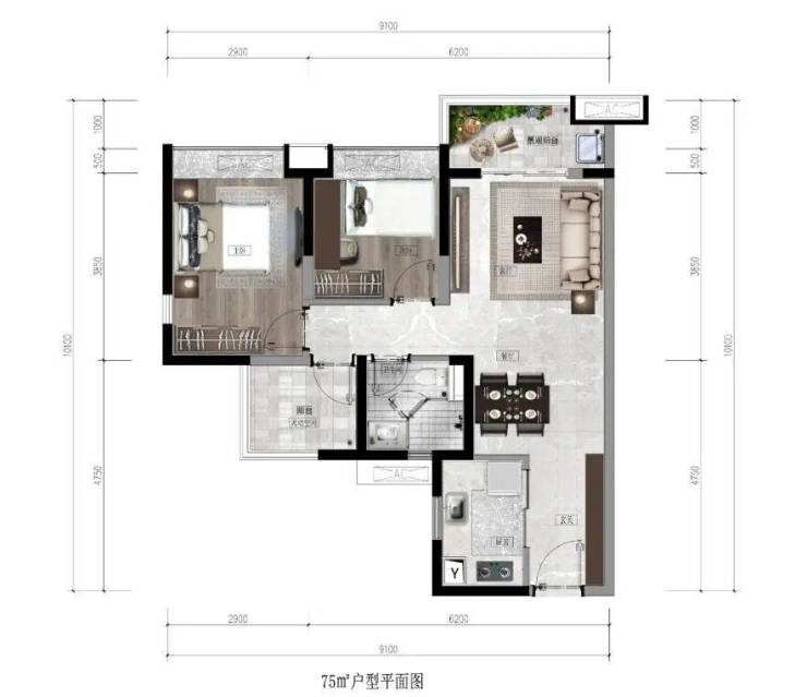 【建面约75㎡|“2+1”房两厅一卫】