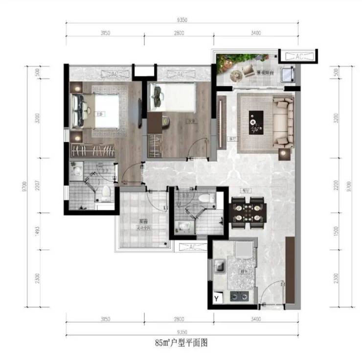 【建面约85㎡|“2+1”房两厅两卫】