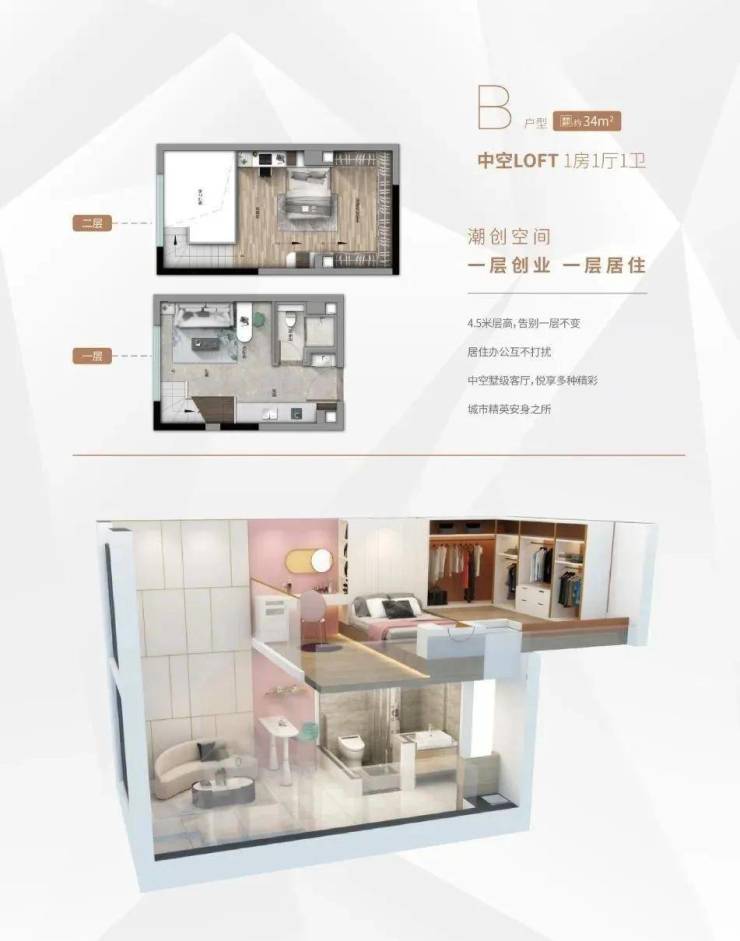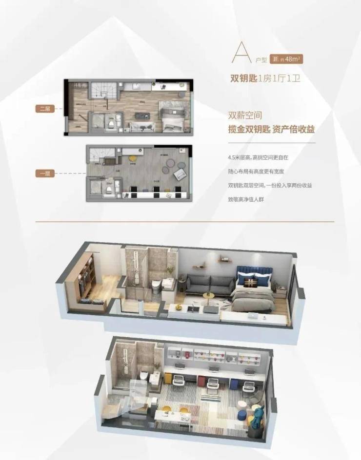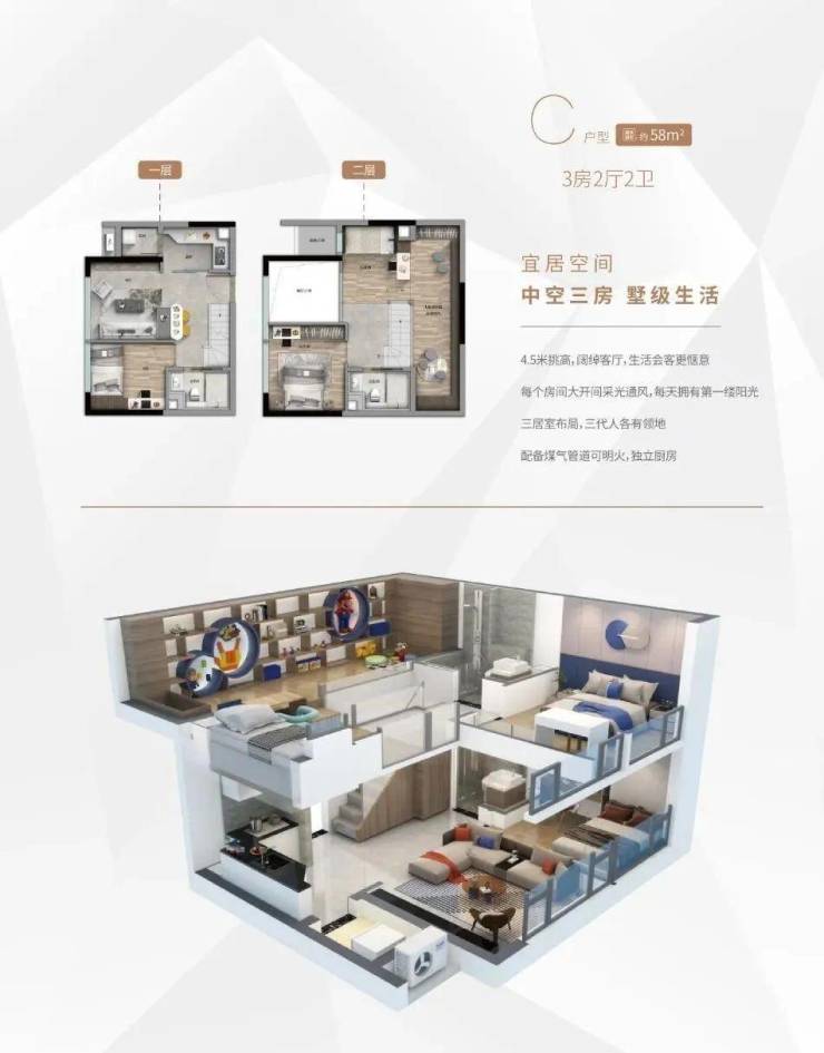 产品户型: 33m²、50m²、58m²复式