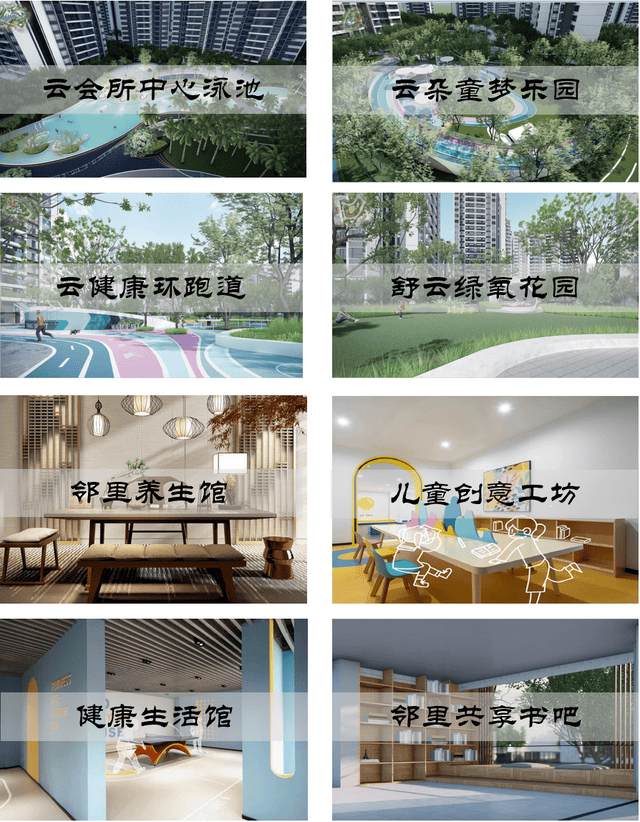 多元艺术空间:邻里养生馆;健康生活馆;邻里共享书吧;儿童创意工坊;邻里会客厅。