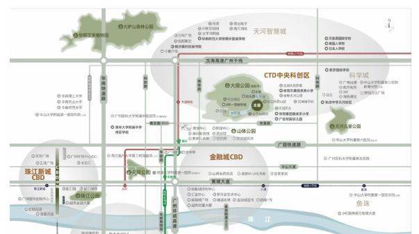金茂越秀·璞樾墅地处天河智慧城与奥体板块交汇处,属于天河东发展成熟且持续升级的核心区域。项目西侧紧邻大观路,北接奥体路,南连广园快速路,东靠科韵路北延线,形成“两横两纵”高效路网。