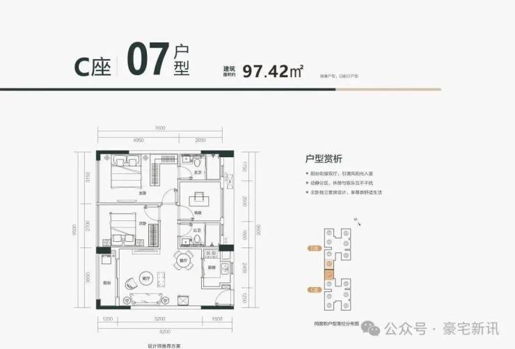 🏡C07户型:约97㎡改善级舒适大三房户型
