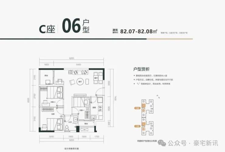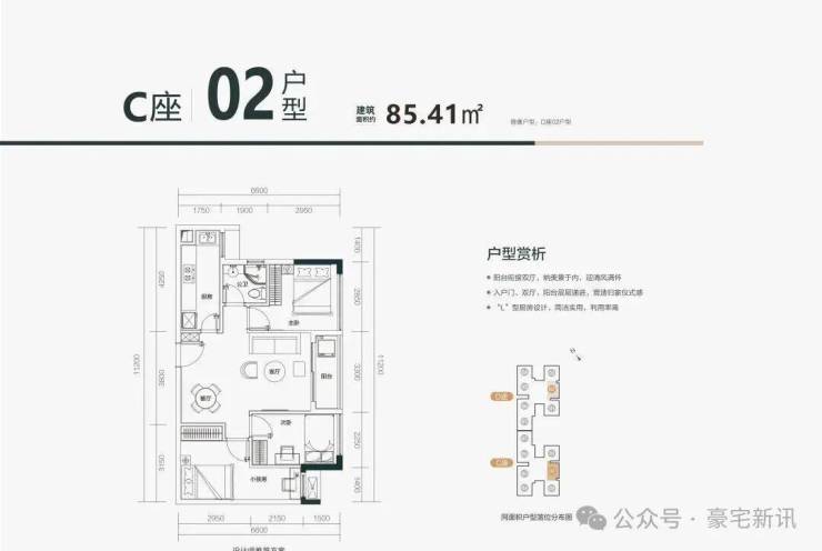 🏡C02户型:约85㎡双龙抱珠 风水好房