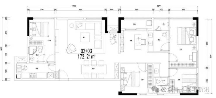 🏡C02+03户型:约172㎡4+1房,阔尺空间藏风华,高区无遮视野揽星河