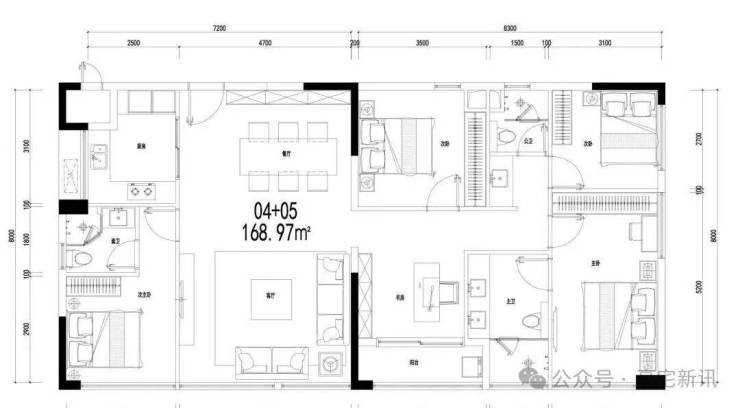 🏡C04+05户型:约169㎡阔绰舒居4房,高处视野私享无遮景致