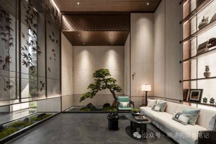 ✅秉承宋式设计美学,匠著“可行、可望、可游、可居”的东方雅素意境。园林设计围绕宋式礼制,一园三堂的主题,打造花都首个宋式园林归家动线。