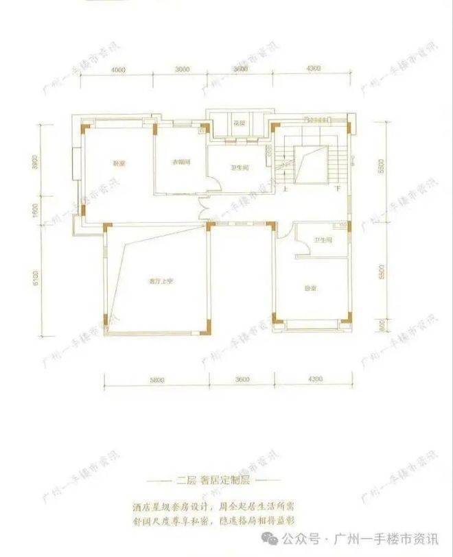 别墅二层只设计了两个超大套房(其中一个有配备衣帽间),二层套房超大的空间设计可以供业主小孩使用。