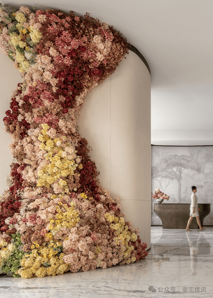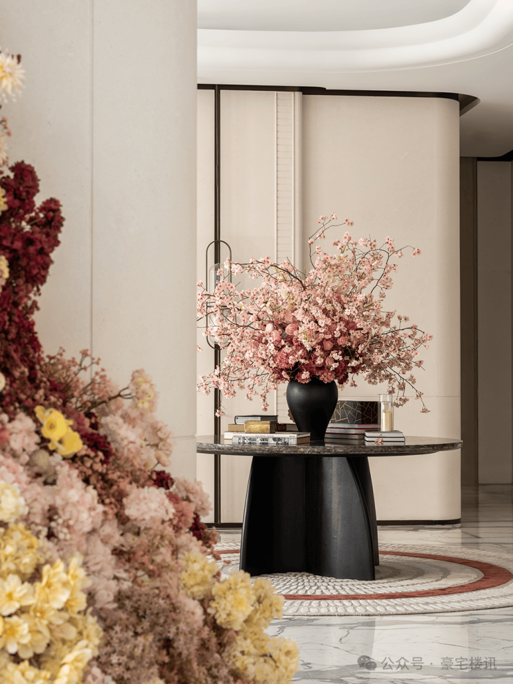 项目所在地踞珠江第一排,一眼珠江千年波澜,设计融入“花城”四季开花的概念,以极简的留白打底,描绘乾净高级的典雅殿堂。