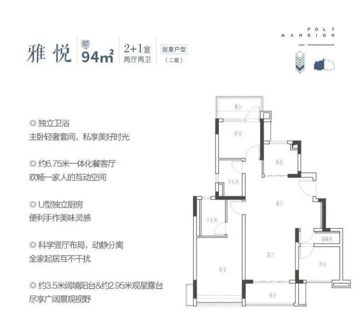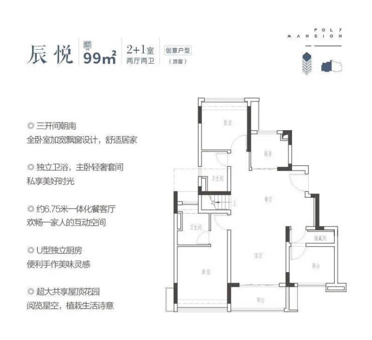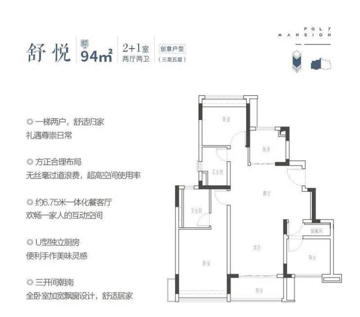 建面95㎡为2+1房2卫,竖厅设计,厅出阳台,主卧带主套,私密性更强。其中多出来的一间房为阳台,交付后需自行改造。