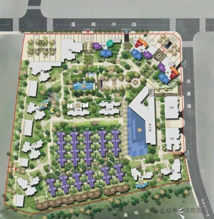8大园林分区、6大功能空间,约600㎡全龄泳池(东莞首家园林式泳池),借助南侧山体景观,营造都市绿林居住环境