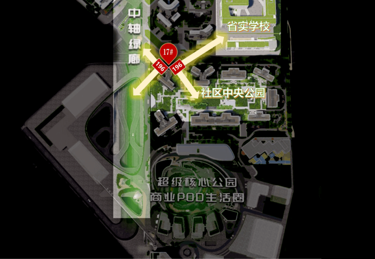 西瞰中轴绿廊、南望中央园林、东望百年省实配套,景观视野丰富多样