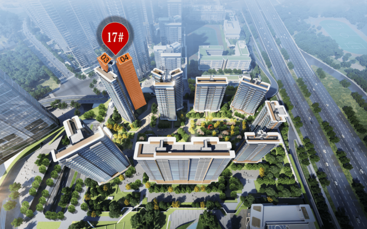 琶洲南二期围合式布局打造,8栋低密小高层,全南向排布。17#坐北朝南,3梯4户设计;