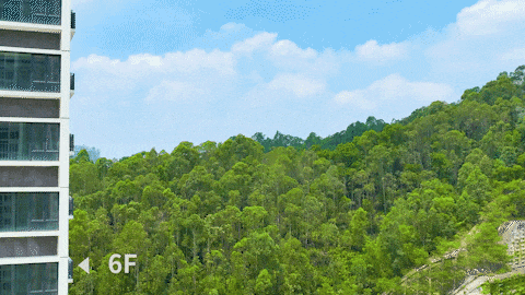 拥有着难得的无边楼距,每一户都是无遮无挡。坐在卧室270 °转角飘窗前,目光所及尽是无边无际的绿意,仿佛被这片林海深深拥抱。清新的空气轻轻拂过你的脸庞,带着大自然的馈赠,让你感受到无比舒适与宁静。