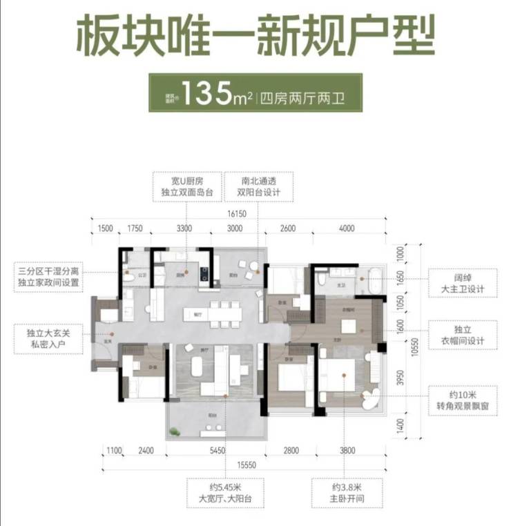 4、户型与产品力突出,作为南站板块唯一新规产品,实用率高达127%-138%,主推77-135㎡三至四房户型,部分户型阳台开间超7米,全屋配备中央空调、方太厨电三件套等,交付标准较高。