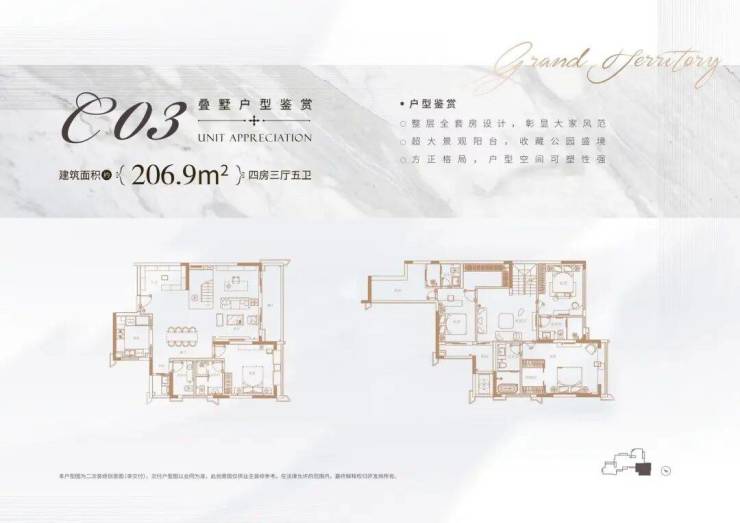 「产品详情」:别墅、叠墅、大平层等全系户型图、主力面积段、实际得房率